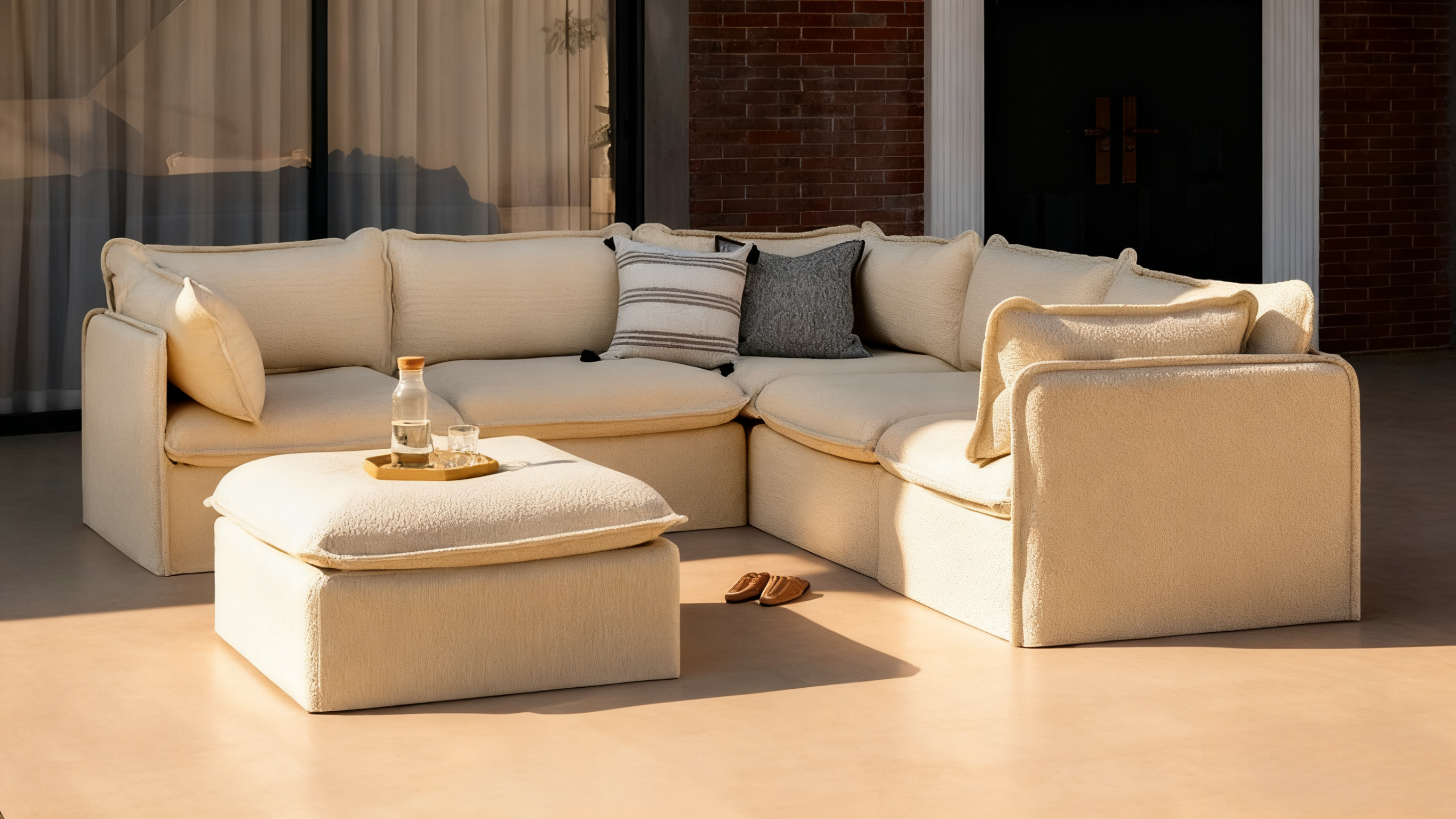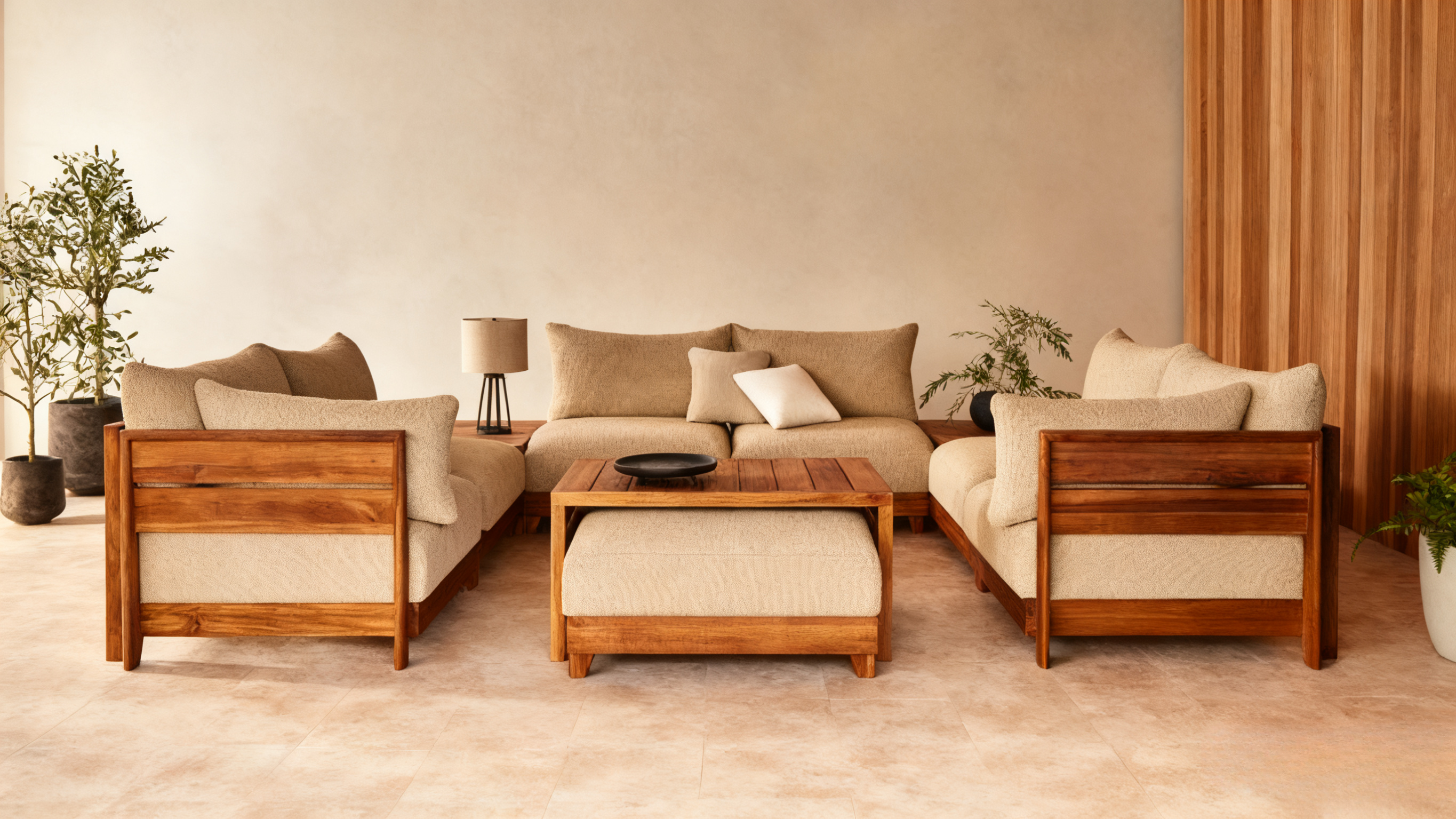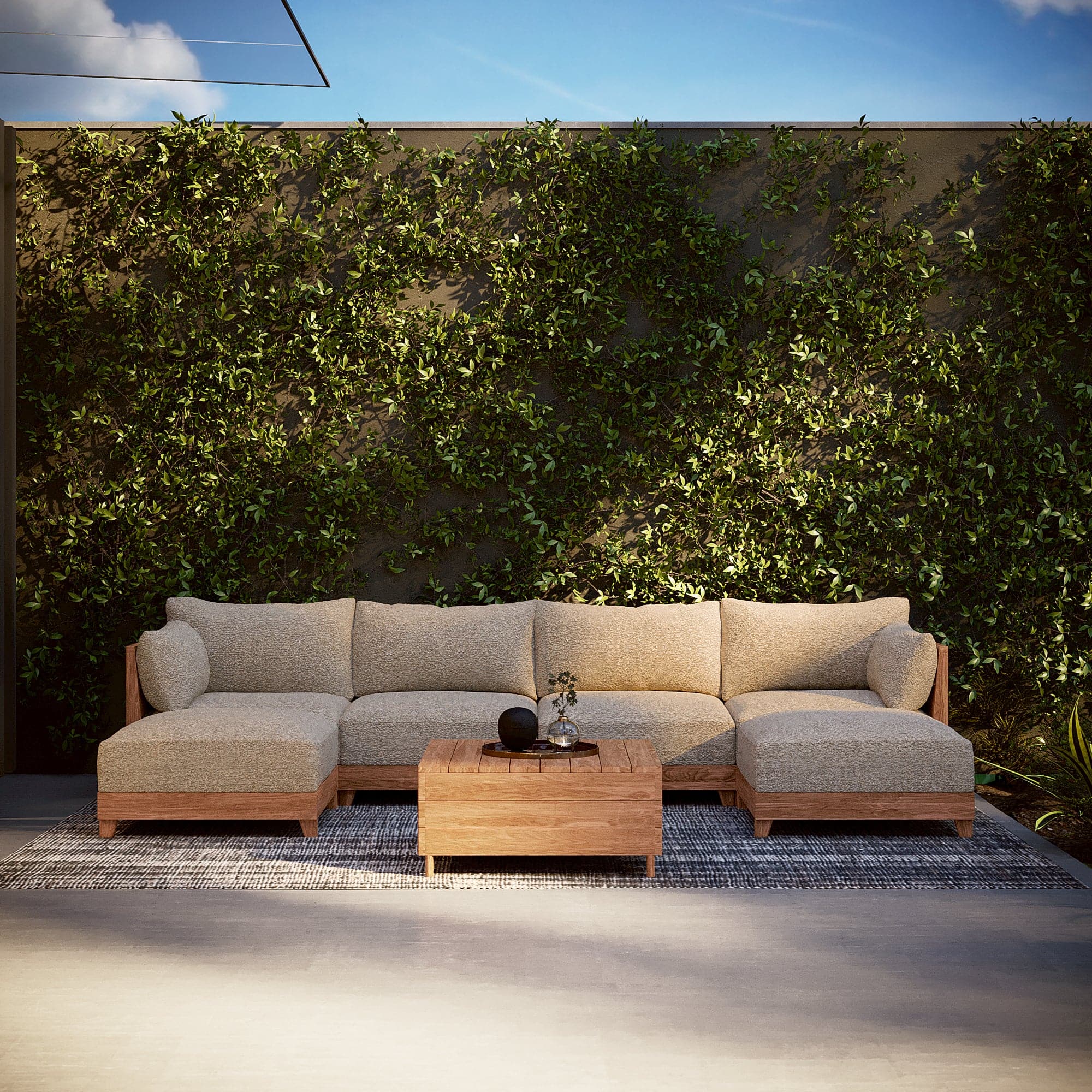 Canapé-lit d'extérieur en teck modulaire | Alfresco Boucle en couleur cacahuète – Redéfinissez le confort extérieur